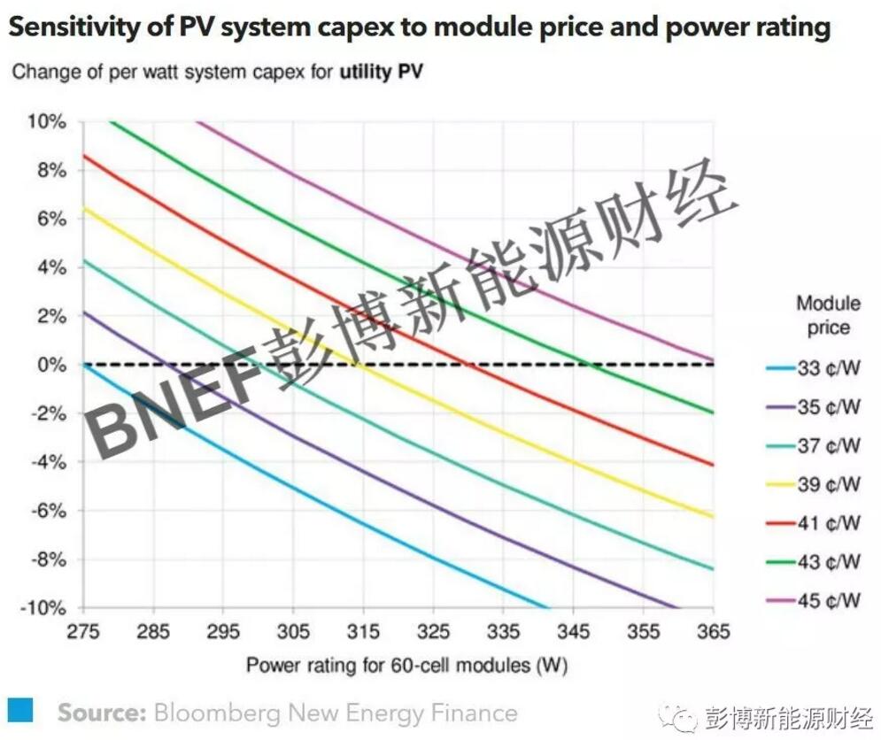 對(duì)于使用雙面組件的光伏項(xiàng)目,其系統(tǒng)規(guī)模應(yīng)該按照包含了背面發(fā)電能力的組件功率來(lái)定義。雙面組件更高的功率幫助降低結(jié)構(gòu)性BOS(Balance of System)、EPC(Engineering, Procurement and Construction),以及項(xiàng)目開(kāi)發(fā)的單瓦成本。相較于采用傳統(tǒng)單面組件的光伏電站,使用P-PERC類型雙面組件可以在幫助系統(tǒng)單瓦成本下降4%的同時(shí),實(shí)現(xiàn)25%毛利的自身銷售。相應(yīng)的,雙面組件將會(huì)在組件制造商及項(xiàng)目開(kāi)發(fā)商兩端都獲得青睞。