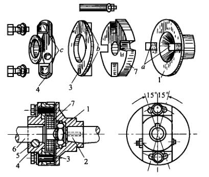 1-從動(dòng)凸緣盤2-噴油泵凸輪軸3-中間凸緣盤4-驅(qū)動(dòng)凸緣盤5-銷釘6-驅(qū)動(dòng)齒輪軸7-夾布膠木墊盤